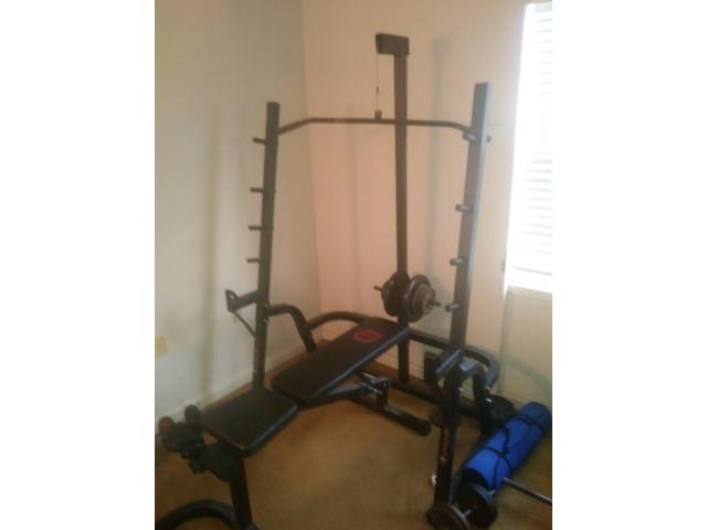 Weight pulley rack, bench and iron weights. Weights various sizes 5lb. to 25lb. Call Ron 561-301-8119.